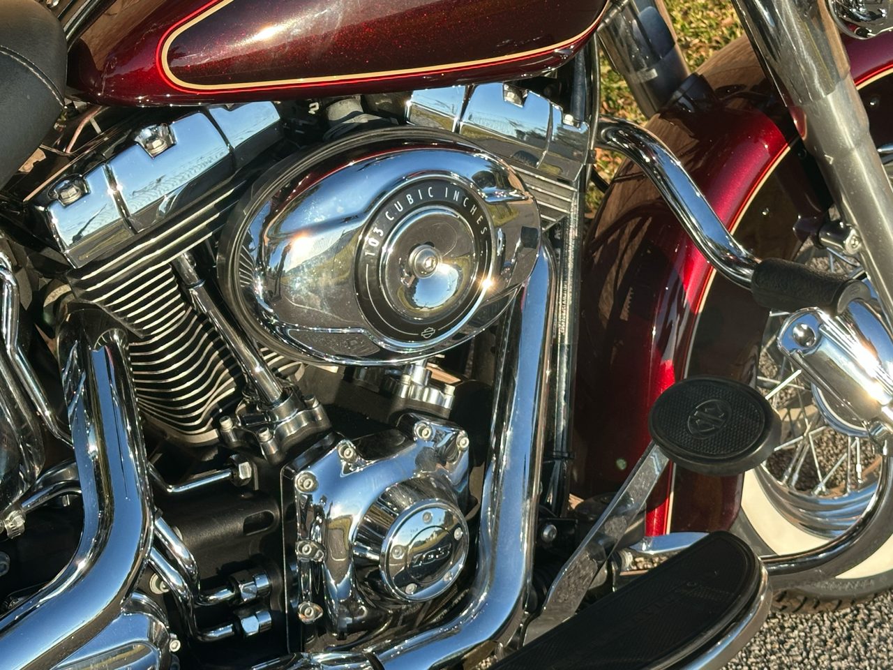 2015 Harley Heritage Classic FLSTC super clean bike with 29,000 miles. Mysterious Red Sunglow and Blackened Cayenne in color, 6 speed transmission, 103 cubic inch fuel injected engine. Comes with the following: White wall tires, Cobra exhaust pipes, serviced and ready to cruise. The bike you look at today, and want to think about tonight, before buying it tomorrow, will be bought today, by someone who looked at it yesterday, and thought about it last night!