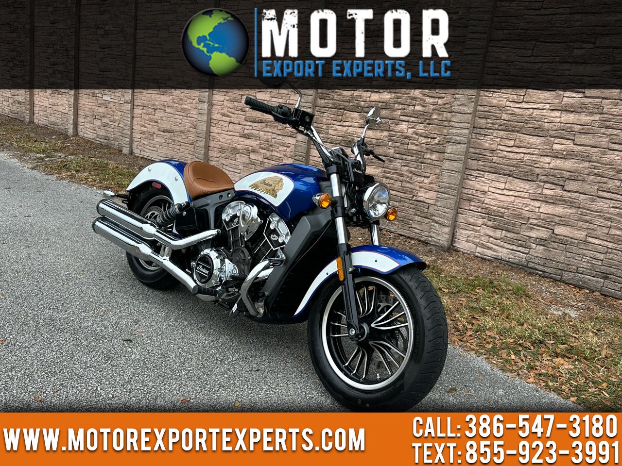 2017 Indian Scout with 1,100 miles. Blue and White in color, six speed transmission, 1133cc fuel injected engine. The bike you look at today, and want to think about tonight, before buying it tomorrow, will be bought today, by someone who looked at it yesterday, and thought about it last night! Financing available. Call for details 386-547-3180 At Motor Export Experts LLC, our clients are always welcome test ride. Buy with peace of mind from a licensed and bonded Florida Motor Vehicle Dealer. We can assist with domestic and international shipping. Visit Motor Export Experts LLC online at motorexportexperts.com to see more pictures of this vehicle or call us at 386-547-3180 today to schedule your test drive.
